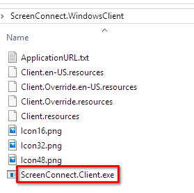 - Another window will open with the extracted files. In this new window, double-click ScreenConnect.Client.exe: